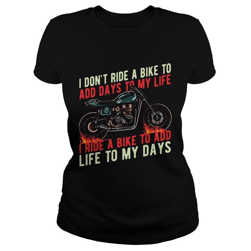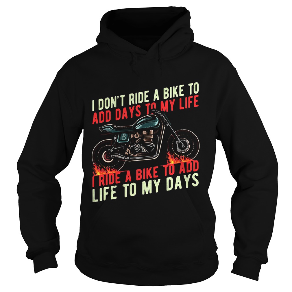 I dont ride a bike to add days to my life I ride a bike to add life to my days Biker shirt, hoodie, sweater, longsleeve and ladies t-shirt