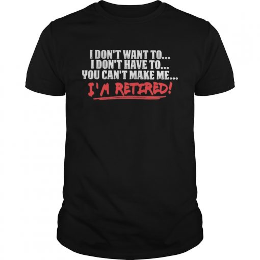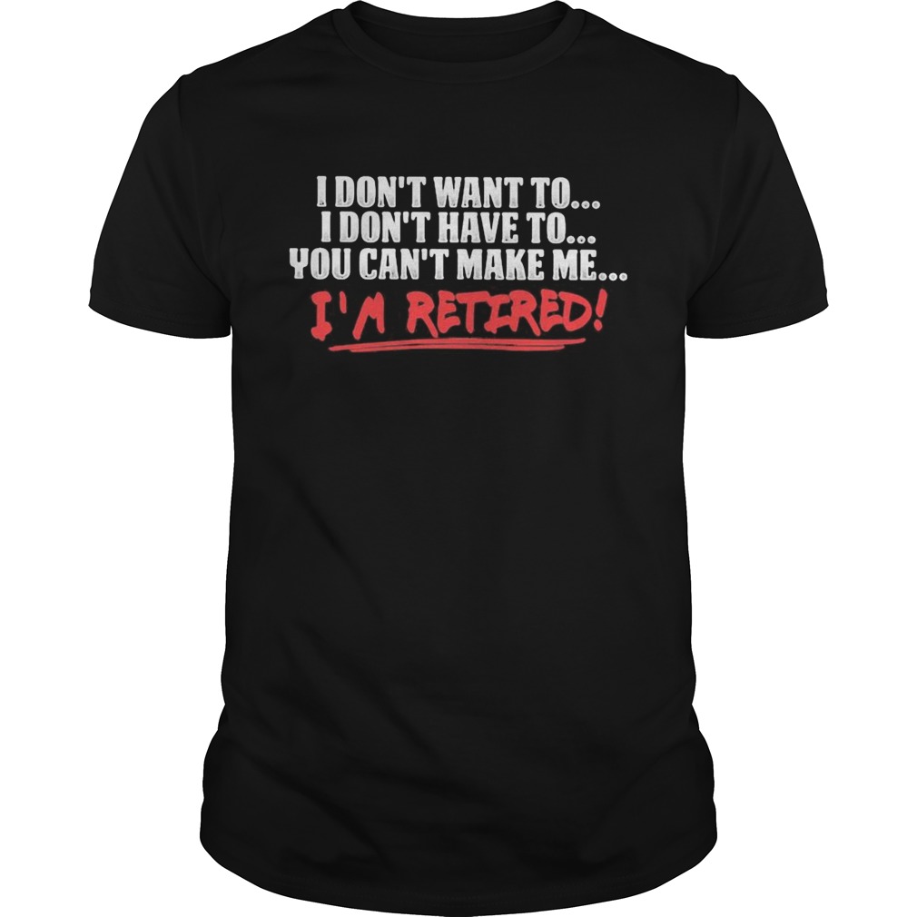 I dont want to I dont have to you cant make me Im retired shirt, hoodie, sweater, longsleeve and ladies t-shirt