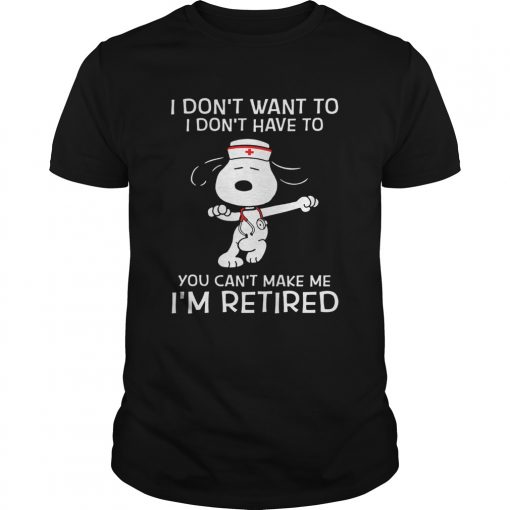 I dont want to I dont have to you cant make me Im retired Snoopy nurse shirt, hoodie, sweater, longsleeve and ladies t-shirt