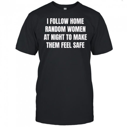 As you slip into our I follow home random women at night to make them feel safe shirt, let its message envelop you like a warm embrace. Whether you’re heading home after a late shift or simply enjoying an evening stroll, this shirt becomes your armor, your shield against uncertainty. Feel the empowerment that comes with wearing a garment that not only speaks volumes but also listens to your unspoken fears. Join us in spreading the message of safety and solidarity. Together, we can create a world where every woman feels protected and cherished. Embrace the power of community and compassion – wear your support proudly and make a difference with every step you take.