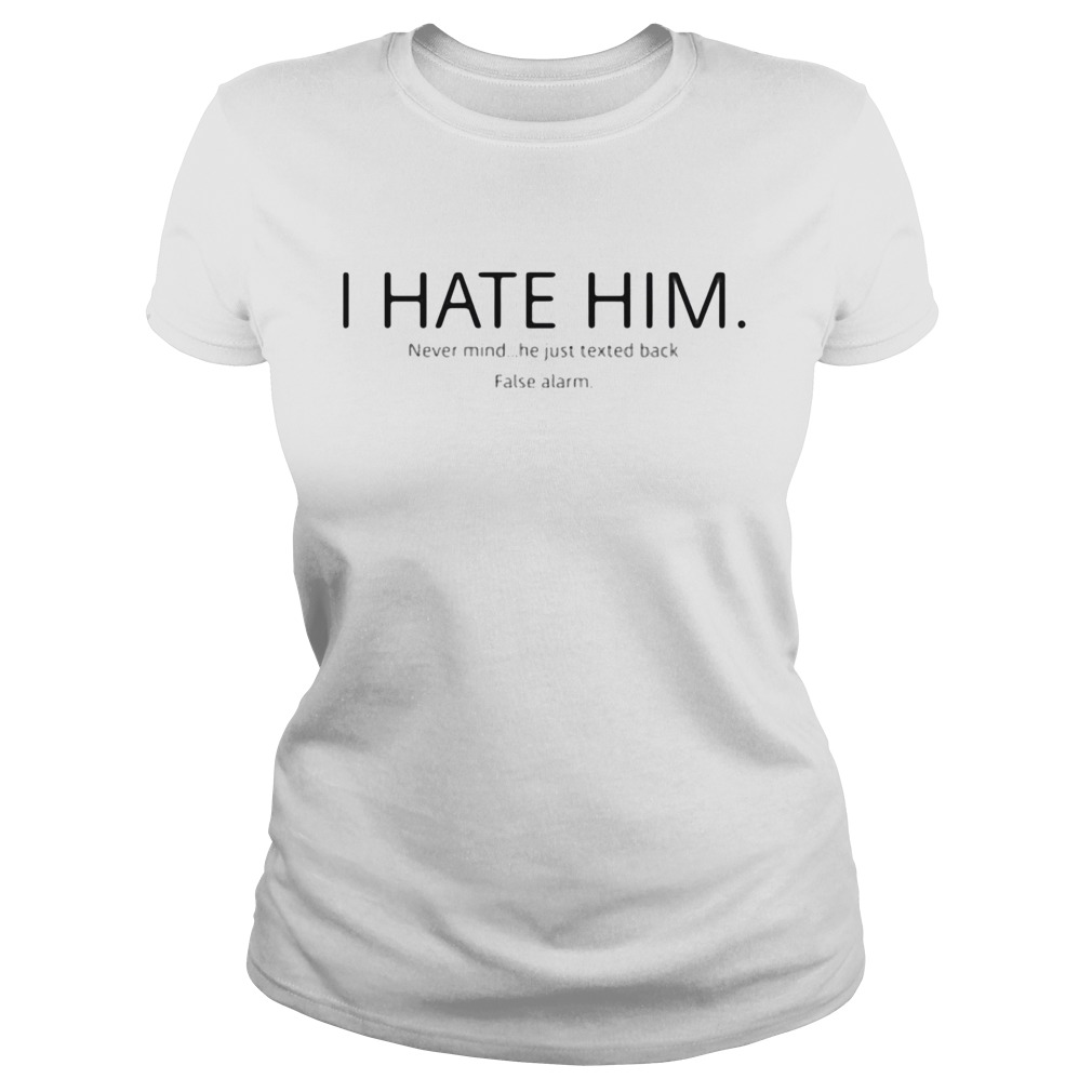 I hate him never mind he just texted back false alarm shirt, hoodie, sweater, longsleeve and ladies t-shirt
