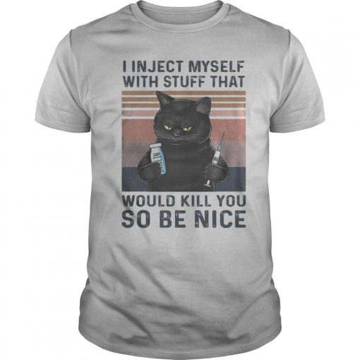 Buy Now: I in ject myself with stuff that would kill you so be nice black cat vintage shirt