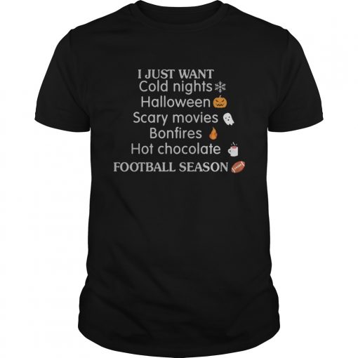 I Just Want Cold Nights Halloween Scary Movies Bonfires Hot Chocolate Shirt, hoodie, sweater, longsleeve and ladies t-shirt