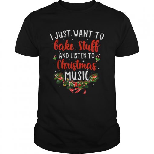 I Just Want To Bake Stuff And Listen To Christmas Music shirt, hoodie, sweater, longsleeve and ladies t-shirt
