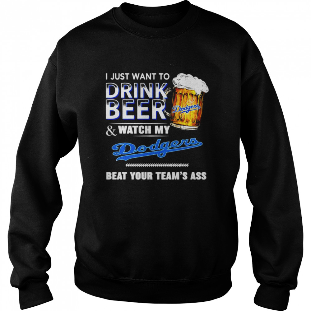 I just want to drink beer and watch my Los Angeles Dodgers beat your teams ass shirt, hoodie, sweater, longsleeve and ladies t-shirt