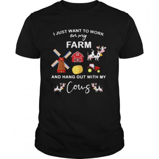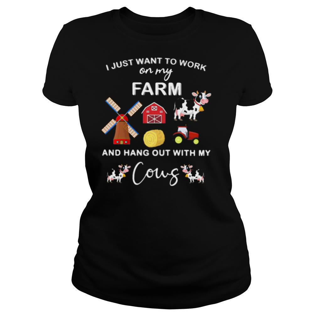 I Just Want To Work On My Farm And Hang Out With My Cows shirt, hoodie, sweater, longsleeve and ladies t-shirt