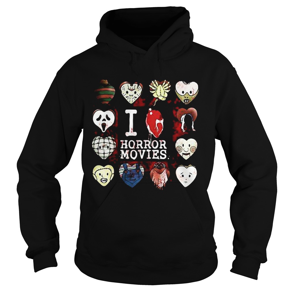 I love horror movies horror character heart face shirt, hoodie, sweater, longsleeve and ladies t-shirt