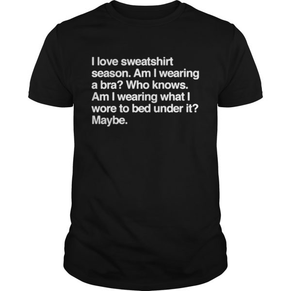 Best I love sweatshirt season Am I wearing a bra Who knows shirt