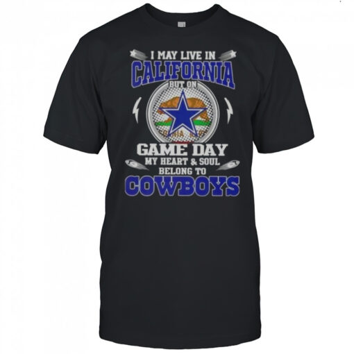 I May Live In California But On Game Day My Heart And Soul Belongs To Dallas Cowboys T-Shirt, hoodie, sweater, longsleeve and ladies t-shirt