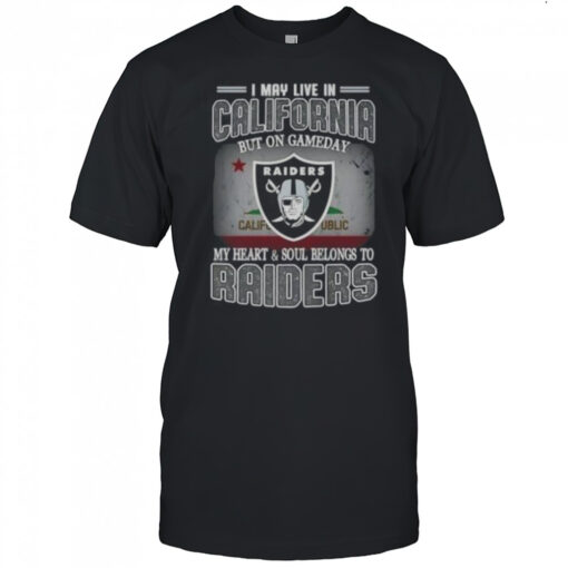 I May Live In California But On Gameday My Heart And Soul Belongs To Raiders T-Shirt, hoodie, sweater, longsleeve and ladies t-shirt