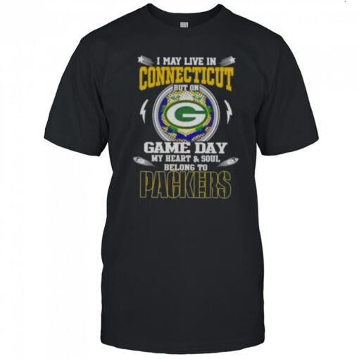 I May Live In Connecticut But On Game Day My Heart And Soul Belongs To Green Bay Packers T-Shirt, hoodie, sweater, longsleeve and ladies t-shirt