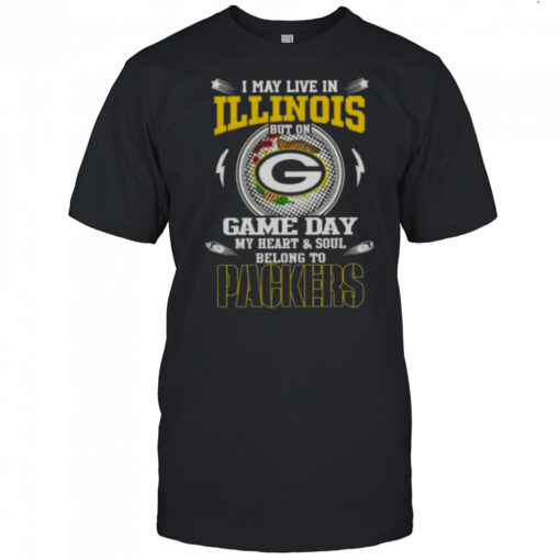 I May Live In Illinois But On Game Day My Heart And Soul Belongs To Green Bay Packers T-Shirt, hoodie, sweater, longsleeve and ladies t-shirt