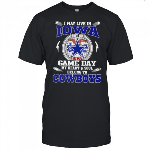 I May Live In Iowa But On Game Day My Heart And Soul Belongs To Dallas Cowboys Football T-Shirt, hoodie, sweater, longsleeve and ladies t-shirt