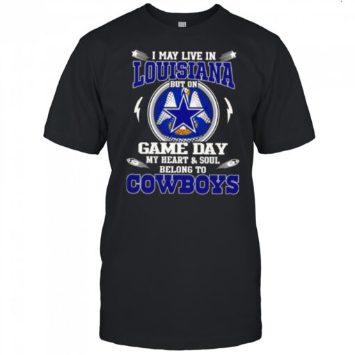 I May Live In Louisiana But On Game Day My Heart And Soul Belongs To Dallas Cowboys T-Shirt, hoodie, sweater, longsleeve and ladies t-shirt