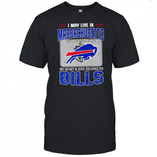 I may live in Massachusetts but on gameday my heart and soul belongs to Buffalo Bills flag shirt, hoodie, sweater, longsleeve and ladies t-shirt