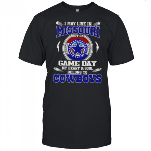 I May Live In Missouri But On Game Day My Heart And Soul Belongs To Dallas Cowboys T-Shirt, hoodie, sweater, longsleeve and ladies t-shirt