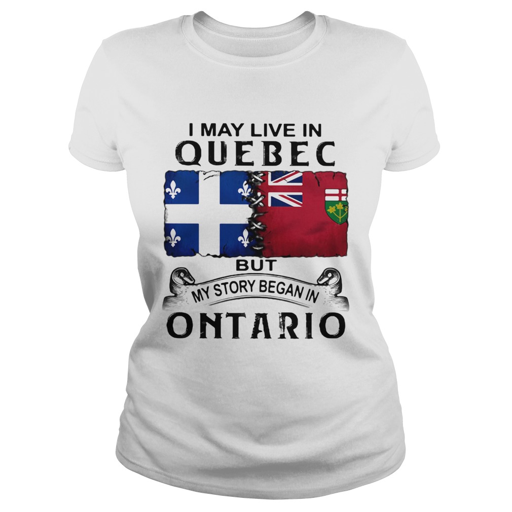 I may live quebec but my story began in ontario shirt, hoodie, sweater, longsleeve and ladies t-shirt