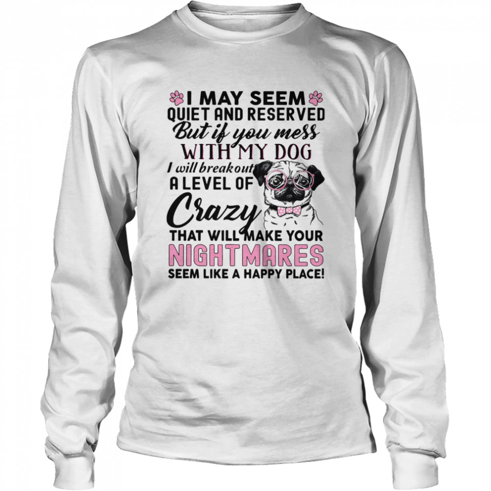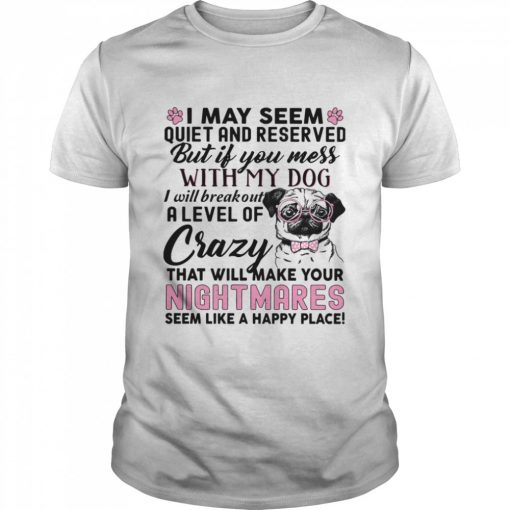 I May Seem Quiet And Reserved But If You Mess With My Dog I Will Breakout A Level Of Crazy That Will Make Your Nightmares shirt, hoodie, sweater, longsleeve and ladies t-shirt