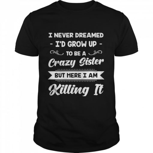 I Never Dreamed I’d Grow Up To Be A Crazy Sister But Here I Am Killing It shirt, hoodie, sweater, longsleeve and ladies t-shirt