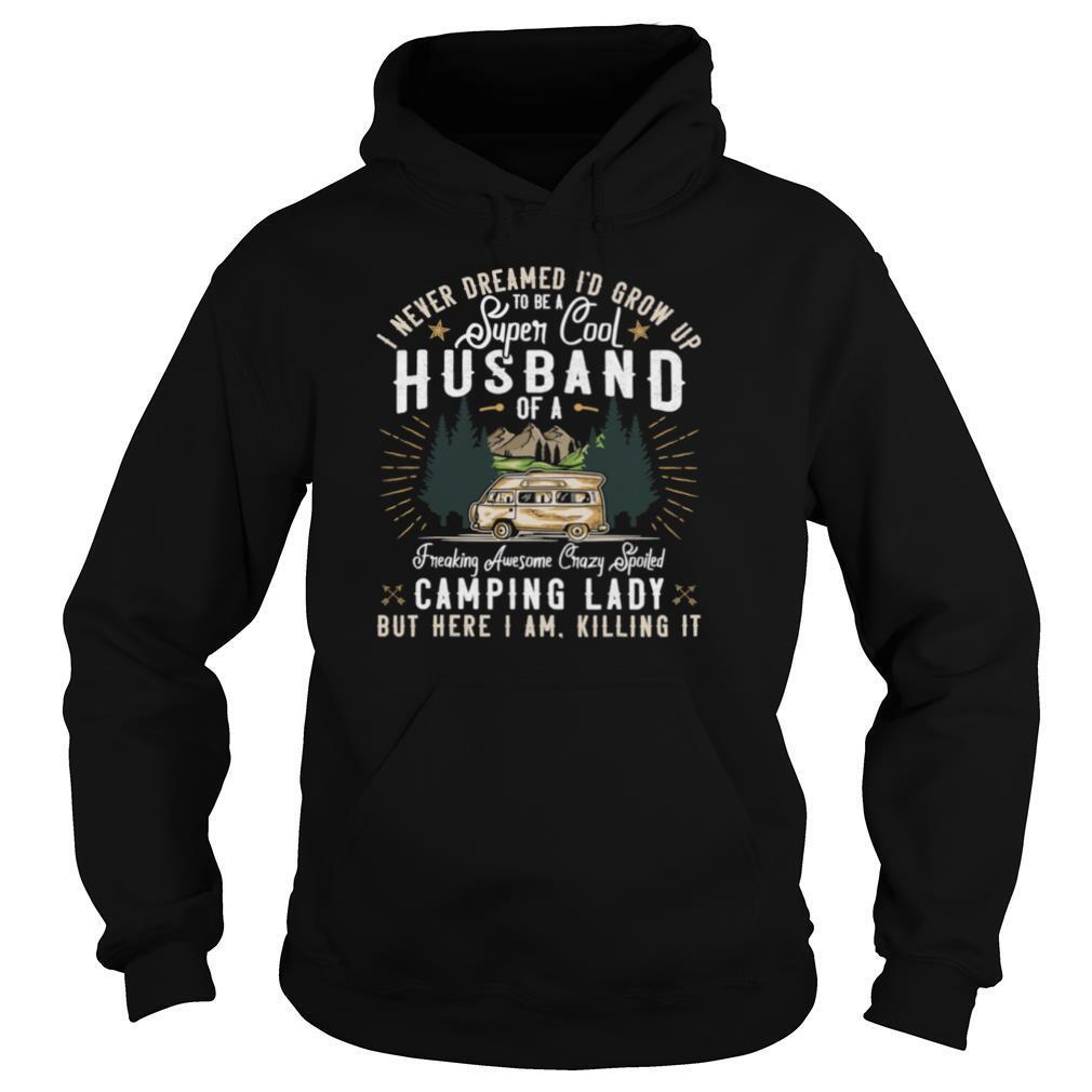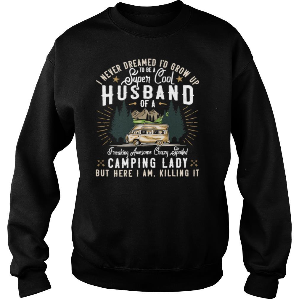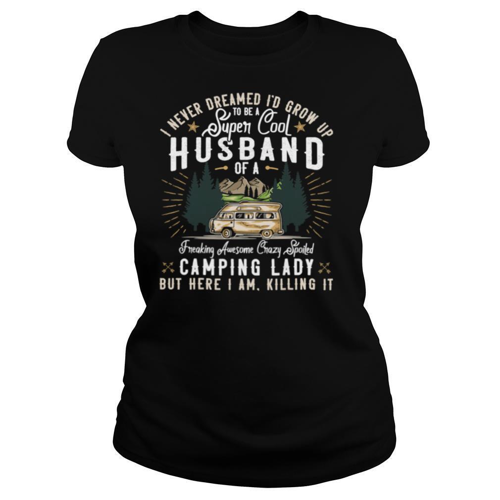 I Never Dreamed I’d Grow Up To Be A Husband Freaking Awesome Crazy Spoiled Camping Lady But Here I Am Killing It shirt, hoodie, sweater, longsleeve and ladies t-shirt