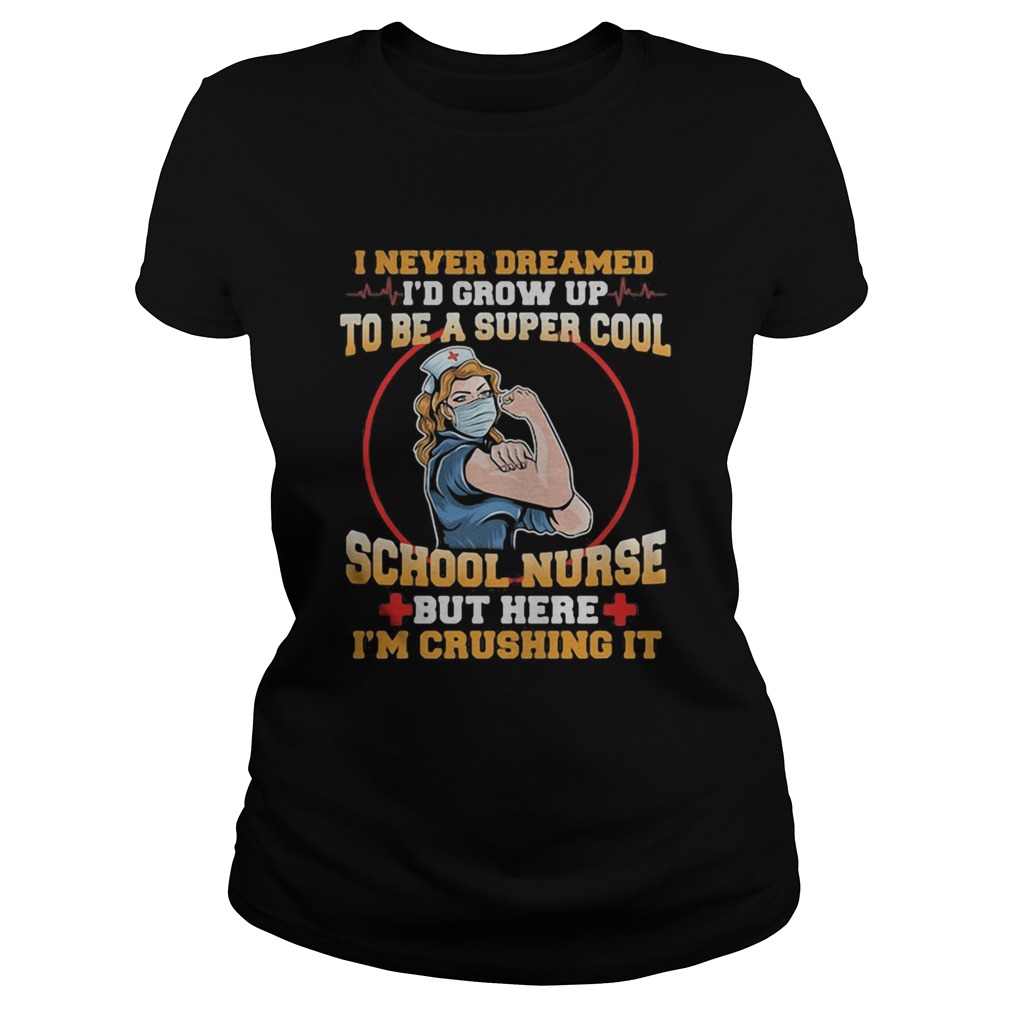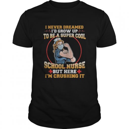 I never dreamed id grow up to be a super cool school nurse but here im crushing it mask shirt, hoodie, sweater, longsleeve and ladies t-shirt
