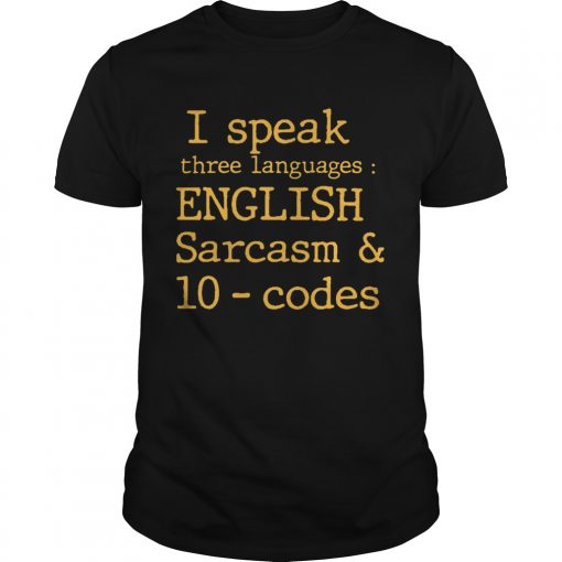 I Speak Three Languages English Sarcasm And 10 Codes shirt, hoodie, sweater, longsleeve and ladies t-shirt