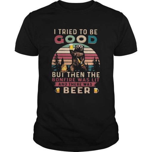 I tried to be good but then the bonfire was lit and there was beer vintage retro shirt, hoodie, sweater, longsleeve and ladies t-shirt