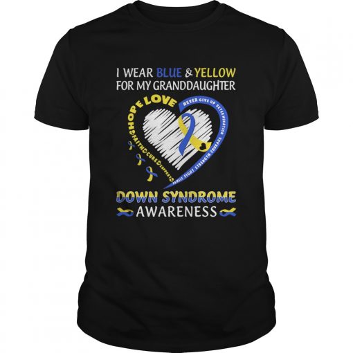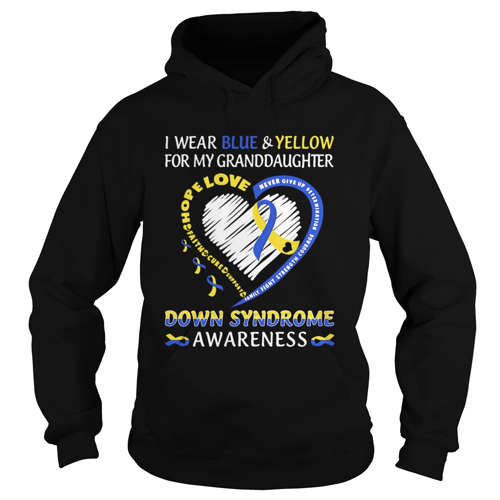 I Wear Blue And Yellow For My Granddaughter Down Syndrome Awareness Heart Family Fight Strength Cou, hoodie, sweater, longsleeve and ladies t-shirt