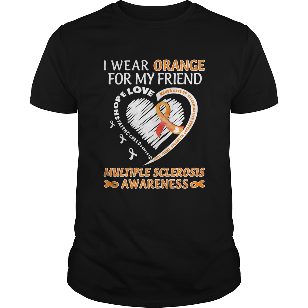 I Wear Orange For My Friend Multiple Sclerosis Awareness Family Fight Strength Courage shirt, hoodie, sweater, longsleeve and ladies t-shirt
