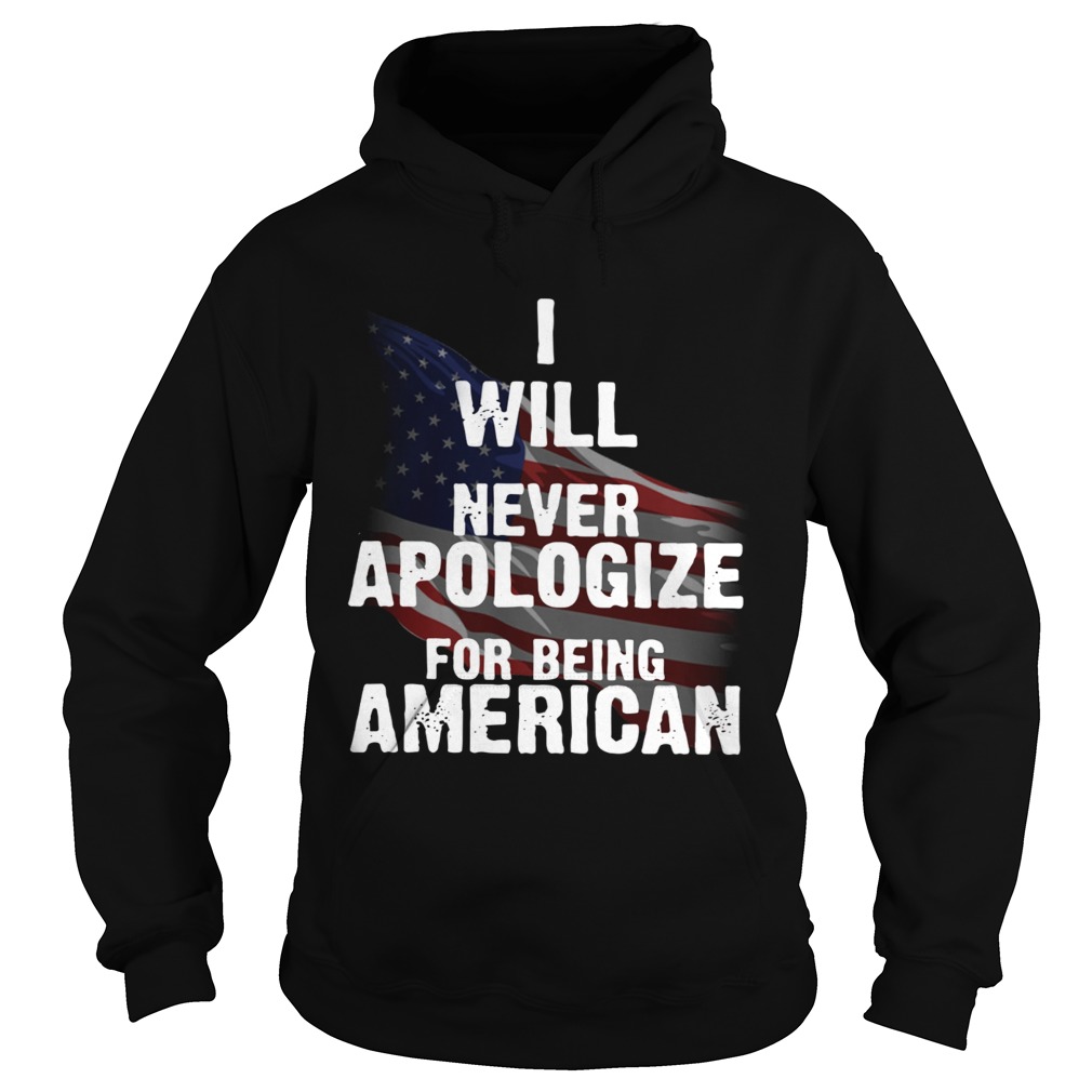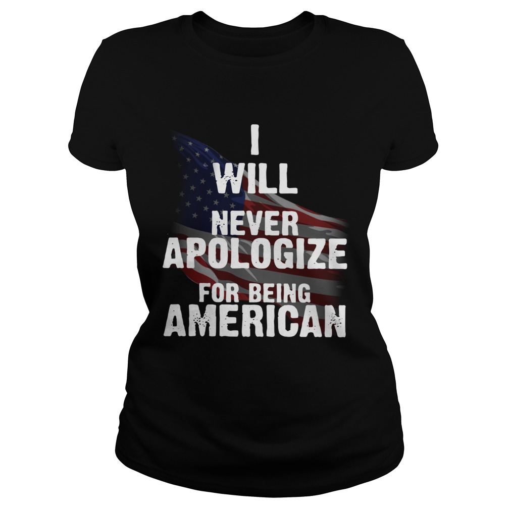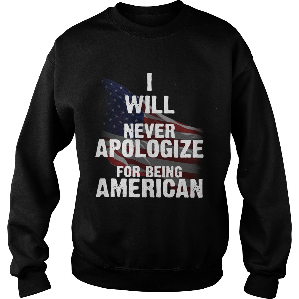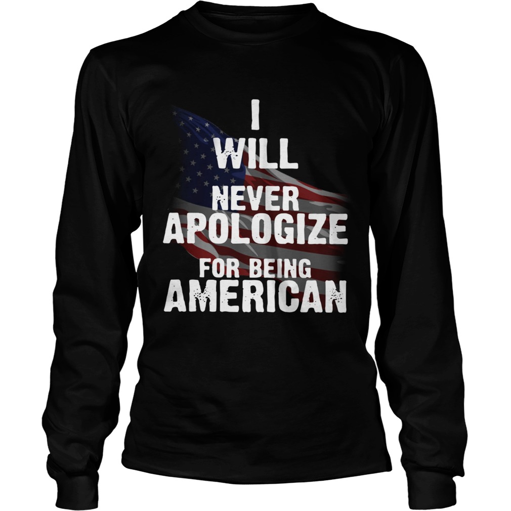 I will never apologize for being American flag shirt, hoodie, sweater, longsleeve and ladies t-shirt