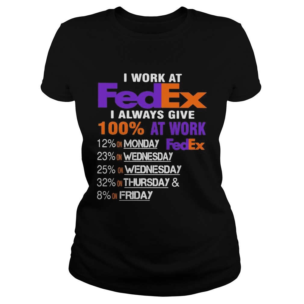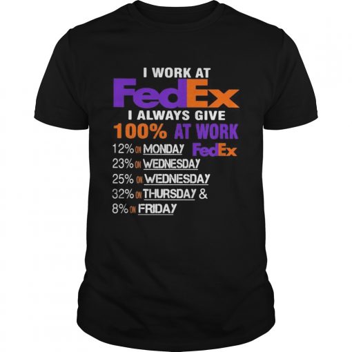 I work at fedex i always give 100 at work shirt, hoodie, sweater, longsleeve and ladies t-shirt