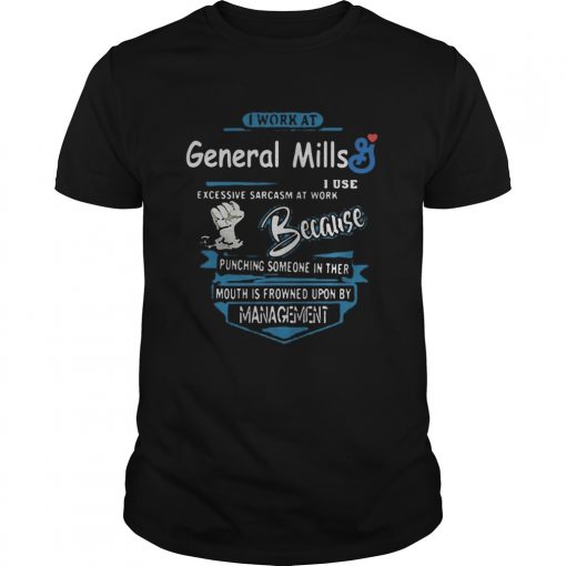 I work at general mills i use excessive sarcasm at work because punching someone in their mouth is, hoodie, sweater, longsleeve and ladies t-shirt