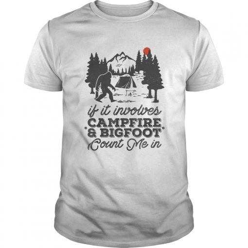 If it involves campfire and bigfoot count me in sunset shirt, hoodie, sweater, longsleeve and ladies t-shirt