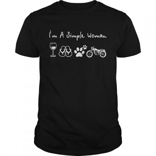 Im a simple woman I like wine flip flop paw dog and Motorbike shirt