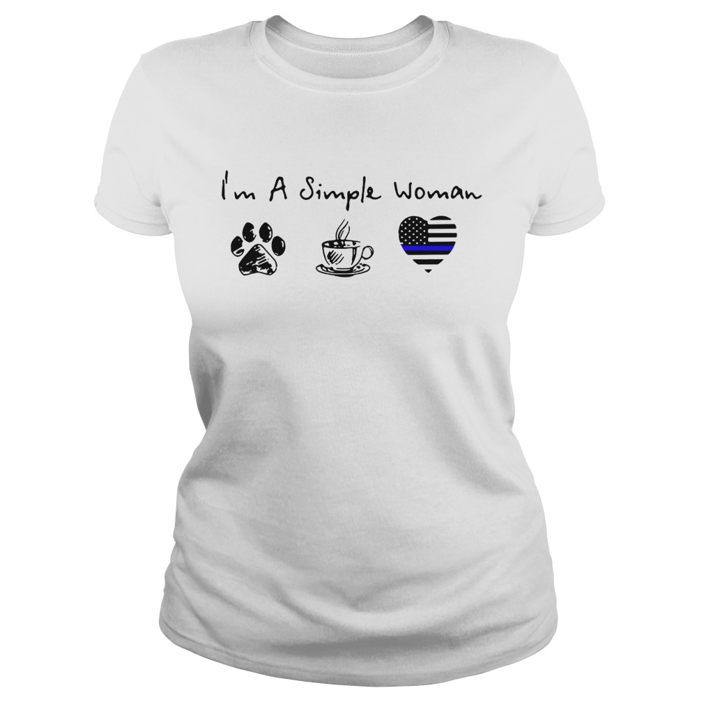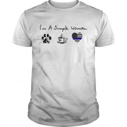 I’m a simple woman I love dog coffee and Thin blue line Heart Police tshirt