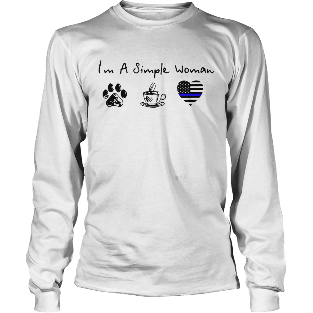 I’m a simple woman I love dog coffee and Thin blue line Heart Police shirt, hoodie, sweater and V-neck t-shirt