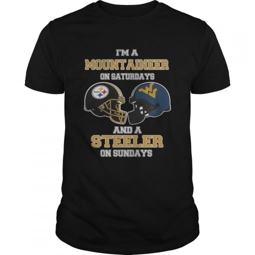 Im A West Virginia Mountaineers On Saturdays And A Pittsburgh Steelers On Sundays shirt, hoodie, sweater, longsleeve and ladies t-shirt