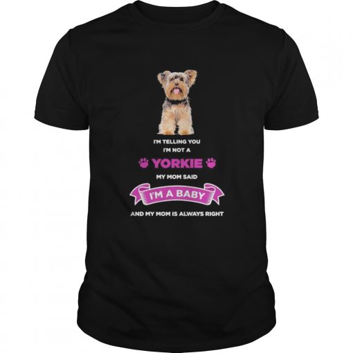 Im telling you im not a yorkie my mom said im a baby and my mom is always right shirt, hoodie, sweater, longsleeve and ladies t-shirt