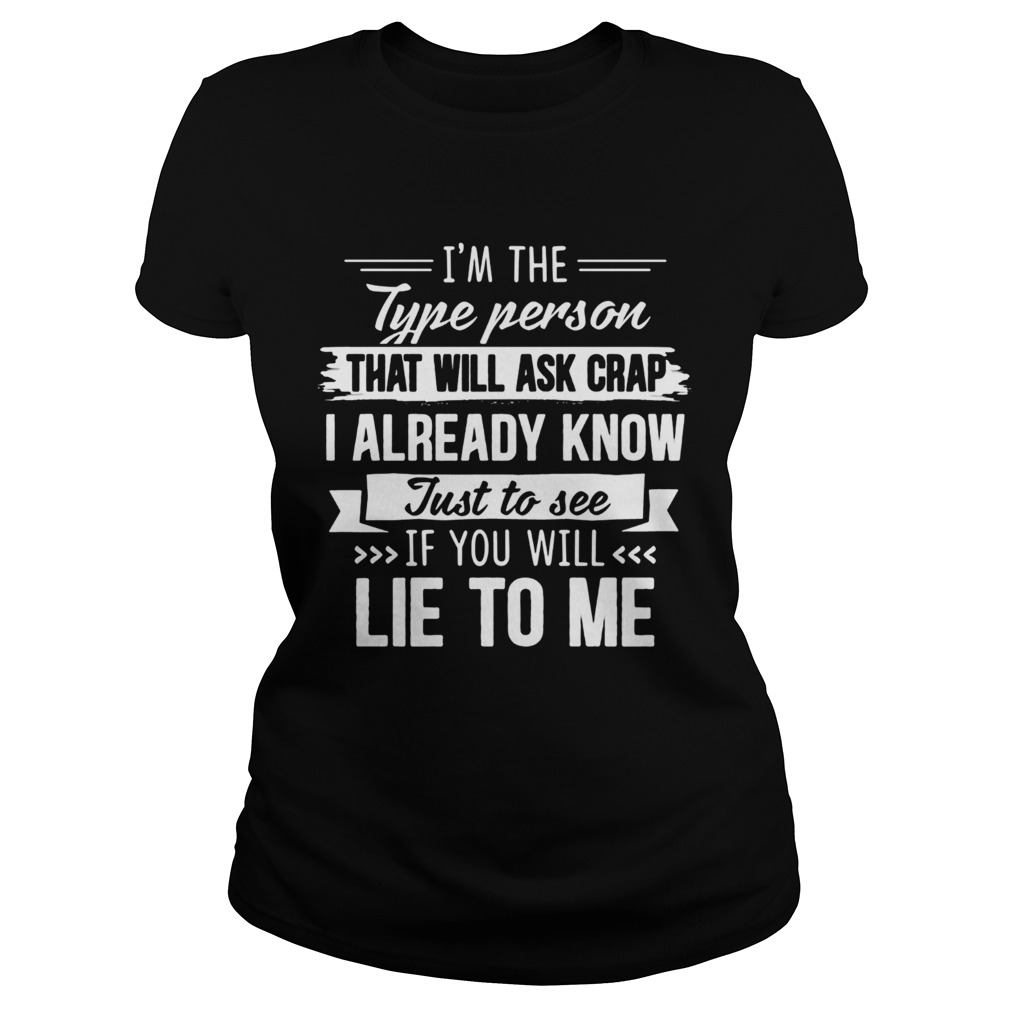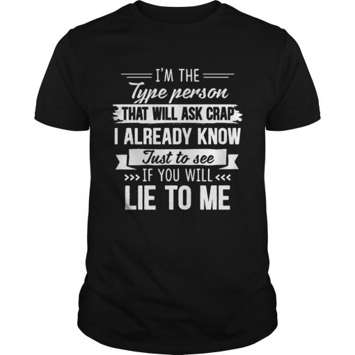 Im the type person that will ask crap I already know just to see if you will lie to me shirt, hoodie, sweater, longsleeve and ladies t-shirt
