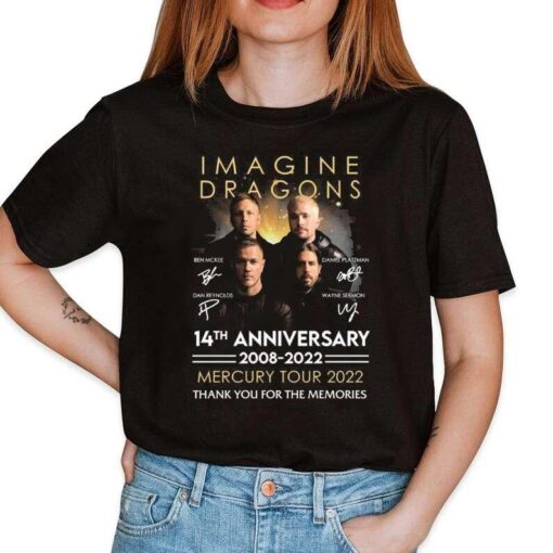 Wearing the **Imagine Dragons Mercury Tour 2022 Signatures T-Shirt** is more than just showing support for your favorite band; it’s about embodying the spirit of their music and connecting with like-minded fans. Imagine yourself at the concert, surrounded by the electrifying energy of the crowd, all united by a shared love for the band’s music. This shirt not only serves as a memento of a memorable night but also as a symbol of your passion for music and art. Every time you put it on, you’ll feel a rush of excitement and nostalgia, reliving the magic of the concert experience.