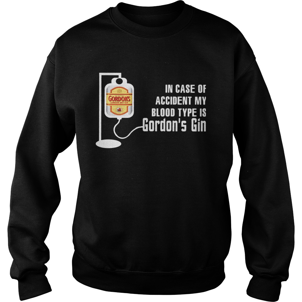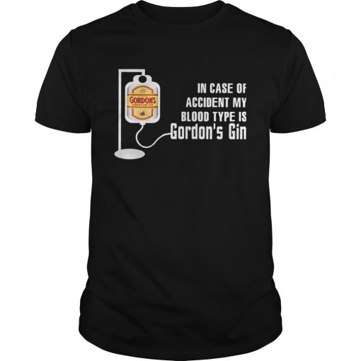 In Case Of Accident My Blood Type Is Gordons Gin shirt, hoodie, sweater, longsleeve and ladies t-shirt