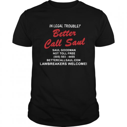 In legal trouble better call saul goodman not toll free shirt, hoodie, sweater, longsleeve and ladies t-shirt