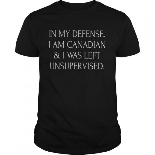 In my defense i am canadian and i was left unsupervised shirt, hoodie, sweater, longsleeve and ladies t-shirt