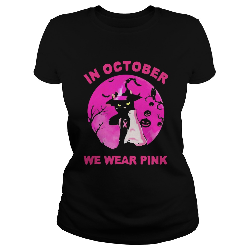 In October We Wear Pink Cat Sunset Halloween shirt, hoodie, sweater, longsleeve and ladies t-shirt