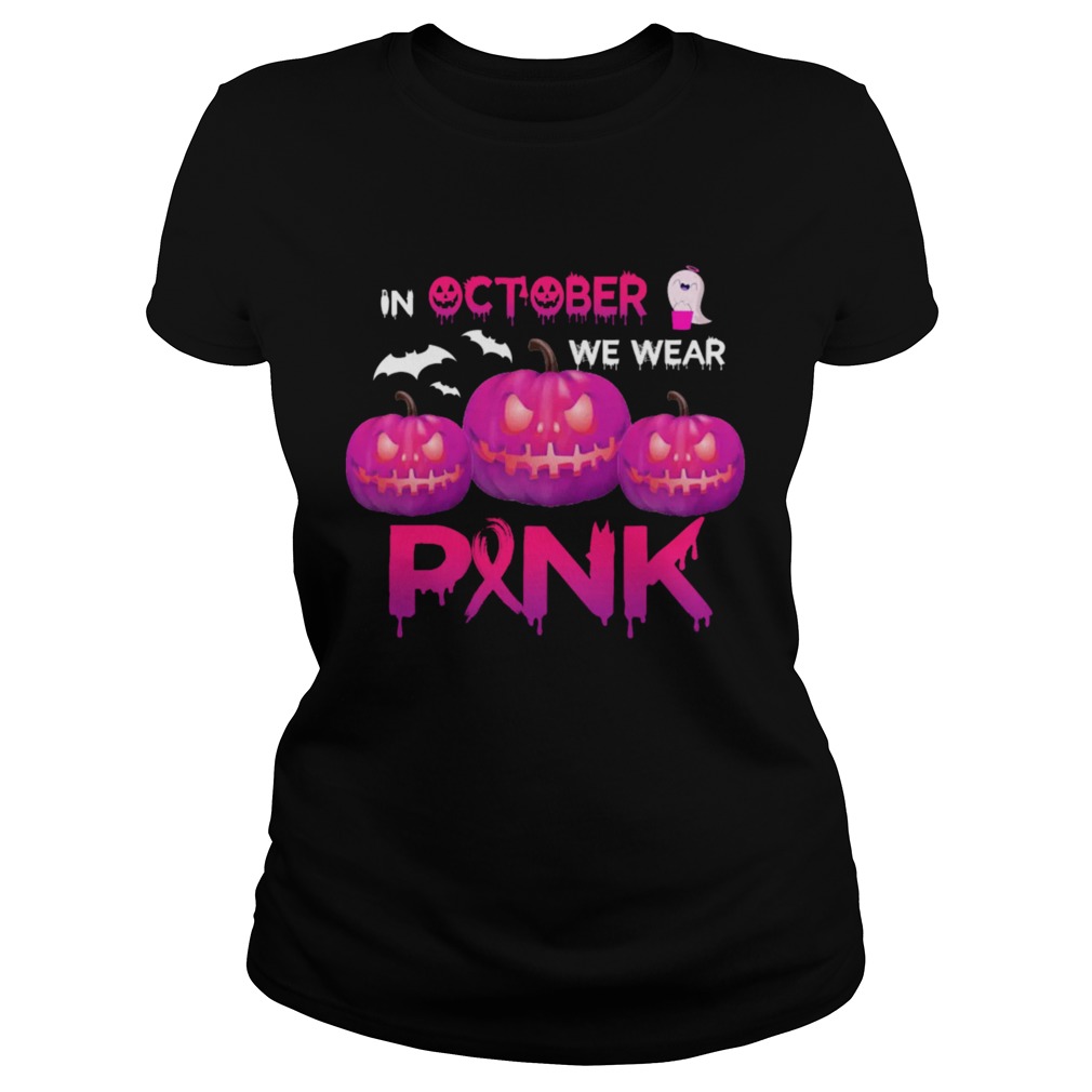 In October We Wear Pink Pumpkin Halloween Womens TShirt, hoodie, sweater, longsleeve and ladies t-shirt