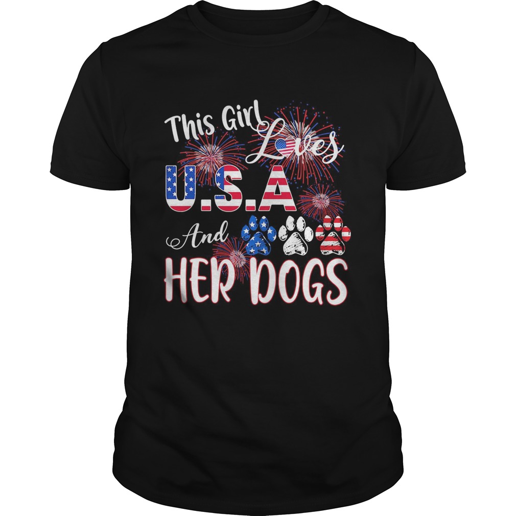 Independence Day this girl loves USA and her dogs paws firework shirt, hoodie, sweater, longsleeve and ladies t-shirt