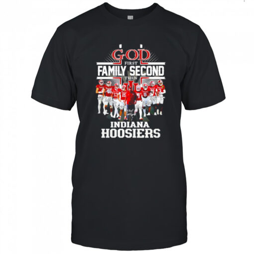 Get ready to show off your Indiana Hoosiers Football God first family second then Hoosiers signature shirt with pride! This exclusive shirt embodies the true essence of being a Hoosier fan – putting your love for the team above all else. Crafted with premium quality materials, this shirt is not just a piece of clothing; it’s a symbol of unwavering loyalty and passion for the Indiana Hoosiers football team. The striking design showcases the team’s spirit in a way that will make you feel like a part of the action every time you wear it. Whether you’re cheering from the stands or watching the game from home, this shirt will be your ultimate companion on game days.