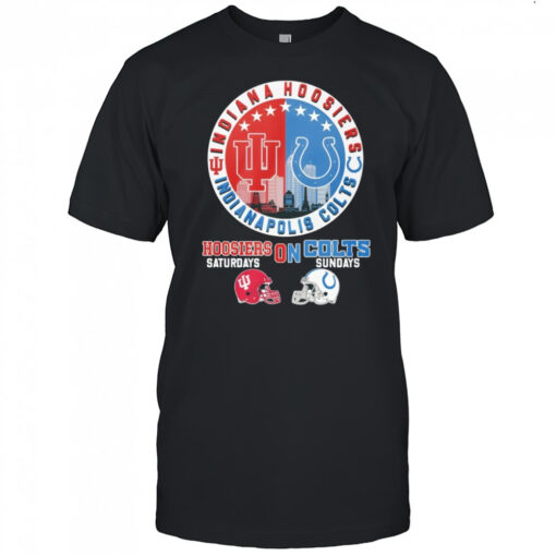 Indiana Hoosiers on Saturdays and Indianapolis Colts on Sundays helmet logo mashup shirt, hoodie, sweater, longsleeve and ladies t-shirt