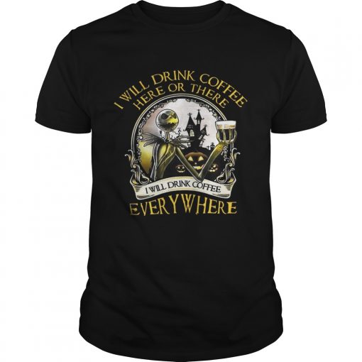 Jack Skellington I Will Drink Coffee Here Or There Everywhere Shirt, hoodie, sweater, longsleeve and ladies t-shirt