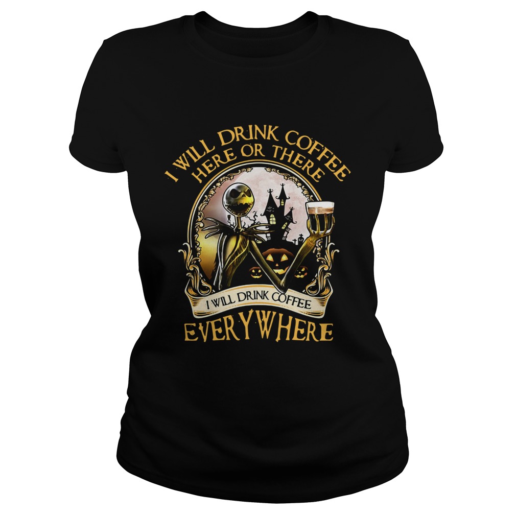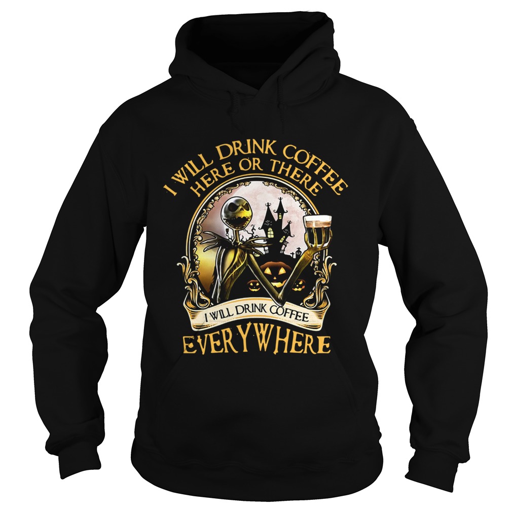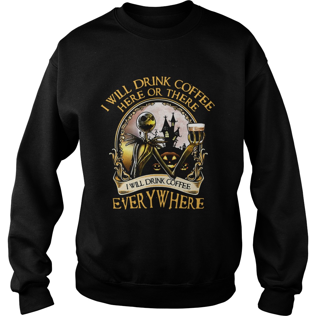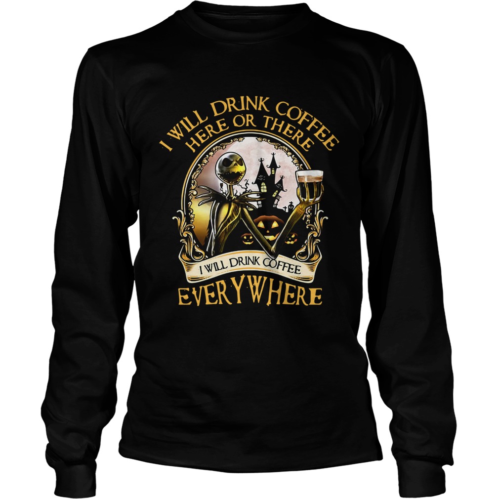 Jack Skellington I will drink coffee here or there I will drink coffee everywhere shirt, hoodie, sweater, longsleeve and ladies t-shirt
